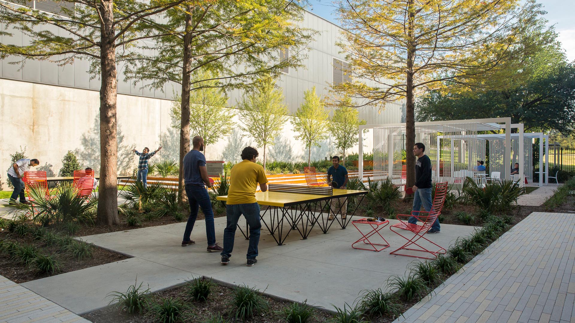 Facing arduous competition to attract and retain top employee talent, companies are distinguishing themselves through the design of their workplaces. SWA worked with the client to reimagine and reinvigorate an outdated campus into a stimulating and rewarding work environment with quality amenities. To undertake the challenge of this campus transformation, the team created a master plan initiative. The structure of the master plan was rooted in five “objectives for change”: amenities, connectivity, identity, landscape sustainability, and lighting. The first phase of the master plan implementation included the complete renovation of three courtyard areas. The renovation featured several dynamic elements with a focus on amenities and sustainability. Bocce courts, oversized chess boards, and ping pong terraces offer active opportunities. A large event lawn, seating areas, and open gathering spaces rest underneath preserved existing trees for passive usage and flexibility. The new spaces are enveloped in a native planting palette, featuring sensory perennial gardens and prairie grasses, reducing water usage and creating a stronger sense of place. The early success of the courtyards will act as the catalyst for the transformation of the remaining campus into a place where the experience extends beyond the walls, establishing a relationship between the workplace interior and exterior.