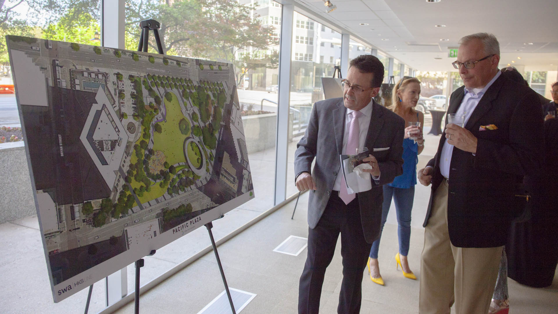 “Everyone associated with Parks for Downtown Dallas is excited by the prospect of commencing work on Pacific Plaza, the first of four priority park projects recommended in the 2013 Update of the Downtown Parks Master Plan,” said Robert W. Decherd, chairman of Parks for Downtown Dallas. One hundred percent of the construction costs will be funded by his group. HKS Architects, the lead occupant of One Dallas Center, whose Dallas headquarters opens onto the park, has also made a generous donation. Construction on Pacific Plaza began in April and is expected to last for 18 months.