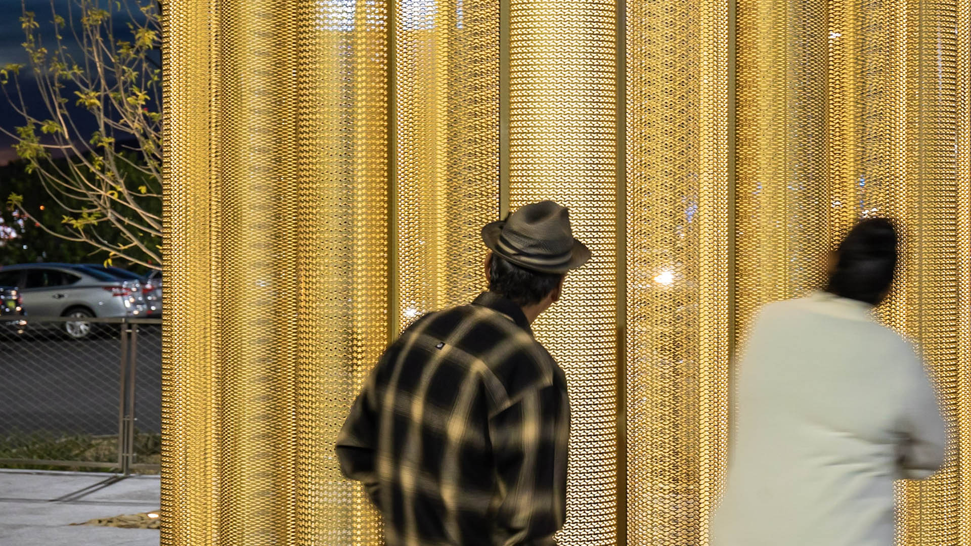 During the day, the metal structure glimmers in the sunlight, the apertures of the individual columns become more discernable upon approach. Programmed lighting at night lends a healing effect, with a votive-inspired glow brightening during the day and dimming to soft vigilance at night. The memorial reads as a luminous beacon, a healing reminder of the community’s oneness.