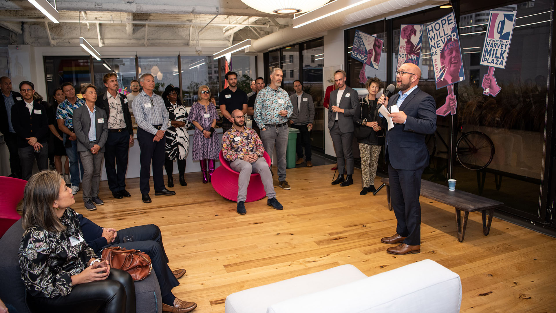 As part of this process Brian Springfield, from Friends of Harvey Milk Plaza, referred us to the AIA – in part because he knew by then that the San Francisco studio staff were great party hosts! On June 9, we welcomed more than 200 LGBTQ+ practitioners and allies to the studio to celebrate queer joy, and to discuss some of the issues that we confront every day in our work.
