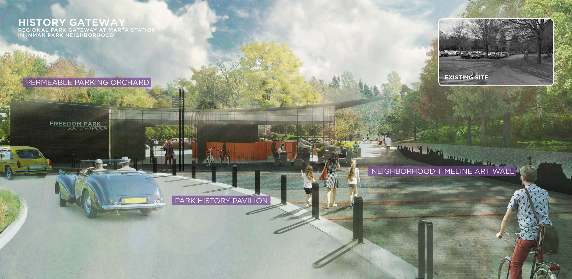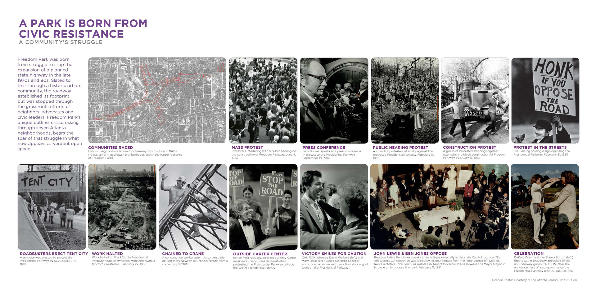 Atlanta’s Freedom Park, a 130-acre-swath of land cleared for a proposed (and ultimately aborted) highway, was born from grass-roots protest and civil disobedience nearly thirty years ago.  Its origin story of civic action is both palpably local and nationally resonant, involving leaders such as Martin Luther King and the late Congressman John Lewis among others.  The master plan for the park’s future is informed by intense community involvement, with the ambition of repositioning the park from its presence as a proud scar into a more potent connective tissue—one that offers an equitable, culturally rich and civic-minded common ground for Atlanta and the nation.