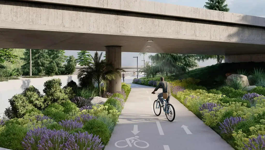 Designed by SWA in partnership with nonprofit advocacy organization Streets For All, the project will extend the path nearly two miles to the east to Venice and Cochran, getting people from Mid City to West LA and the beach on a car-free path. Combined with prior commitments from the Southern California Association of Governments (SCAG), the City of Los Angeles, and the City of Culver City, a total of $7 million has now been secured to advance environmental clearance and technical design work, bringing the project to shovel-ready status.