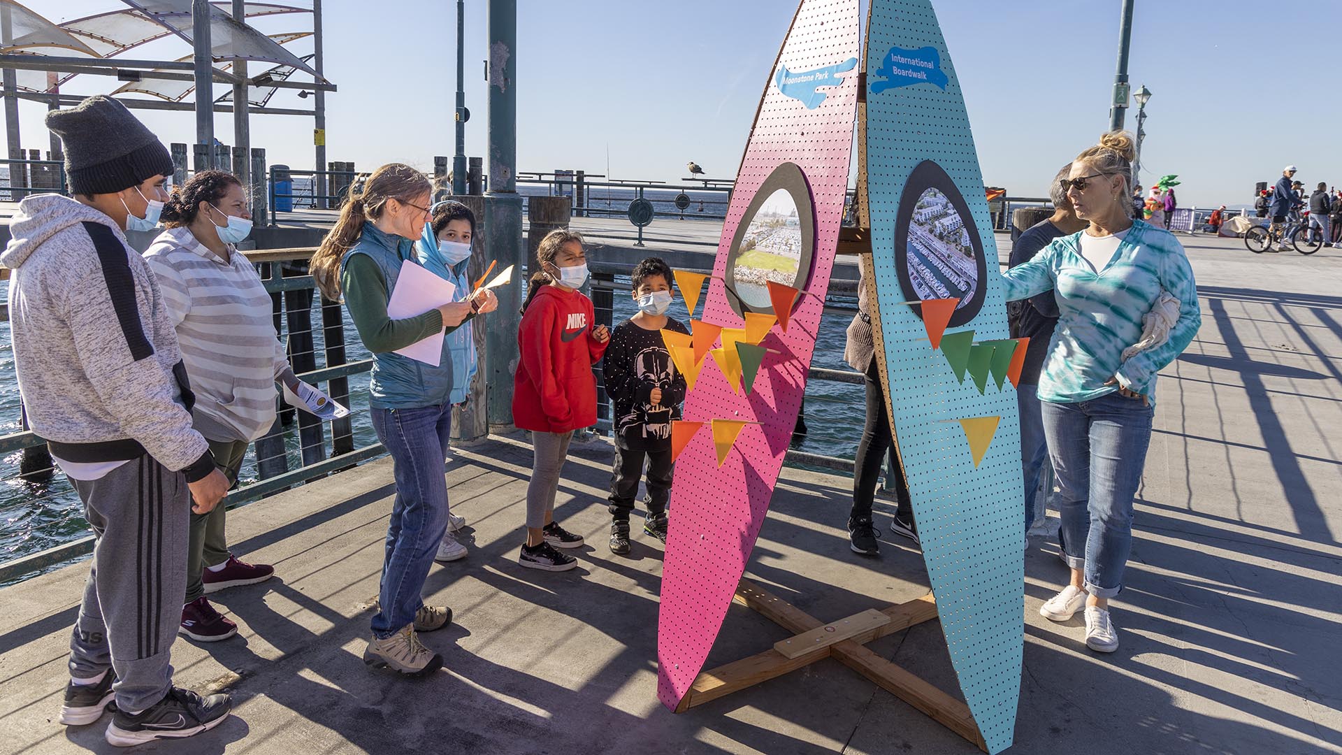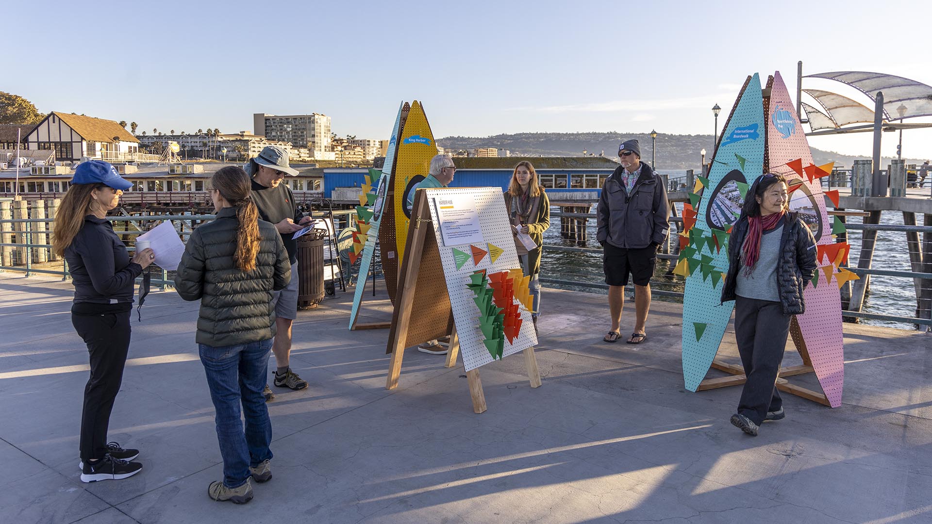 We also knew that pop-up events would likely generate more interest in the online meetings and surveys. The City hosts popular weekend events, including a holiday concert on the pier in December, that bring in a lot of visitors. The area also has a well-known farmers market that is a destination for both locals and visitors. We focused on timing the “kayak” installations – accompanied by SWA staff on-site for 4-5 hours during each event – during those times and at those locations.