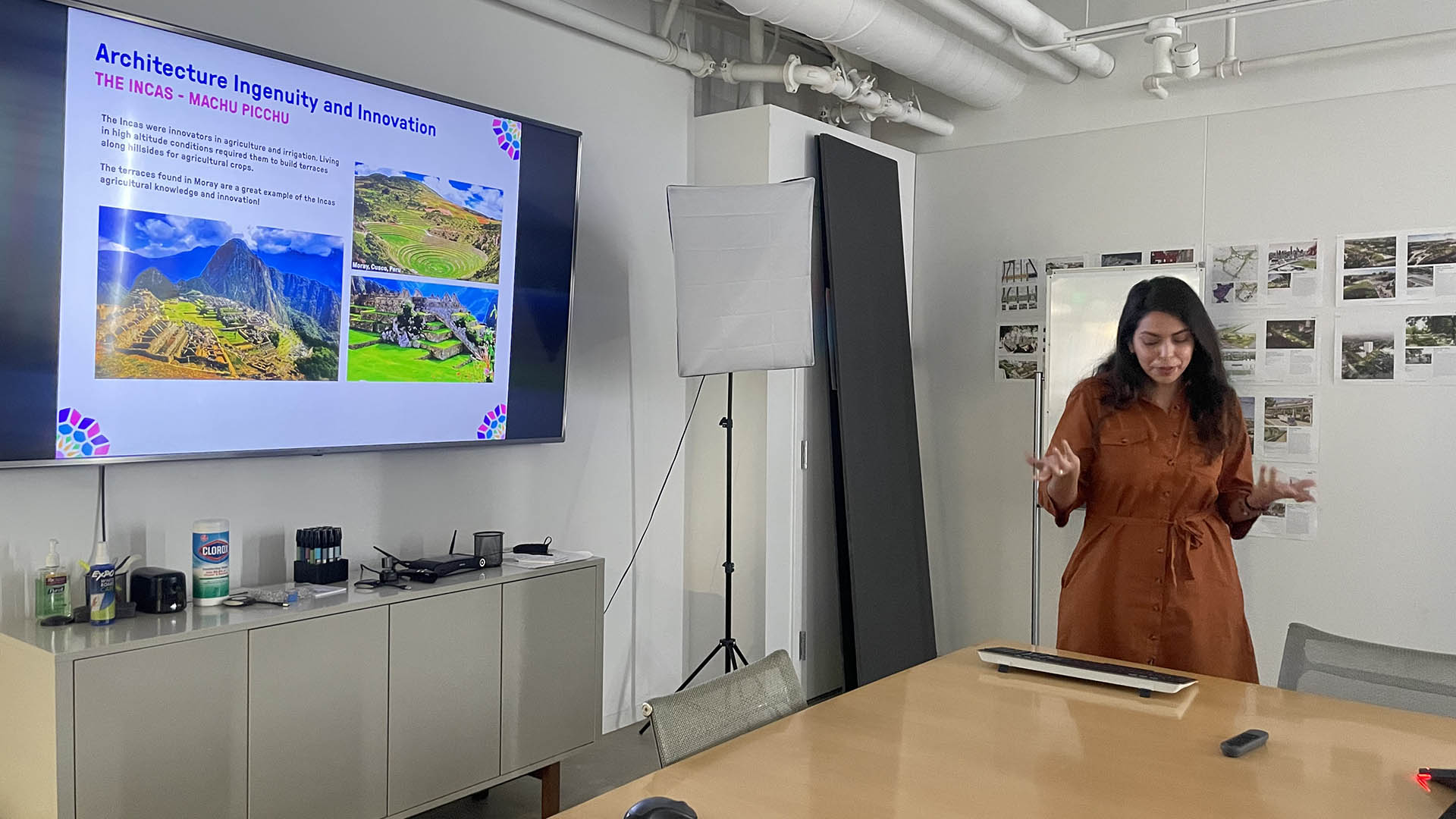 The LA studio’s “Innovation in Latin American Landscapes” presentation on October 3 showcased the architectural ingenuity of Hispanic ancestral communities. “We wanted to display pre-colonial knowledge and techniques; how they were slowly superseded by others’ standards; and examine the way in which Latin countries learned to adapt and innovate their uses of outdoor spaces. Our presentation also highlighted Latin America’s influence on LA’s landscape and use of open space.” Past SWA projects like San Jacinto Plaza and La Plaza Cultura served as case examples of Latin American influence in Los Angeles and beyond.