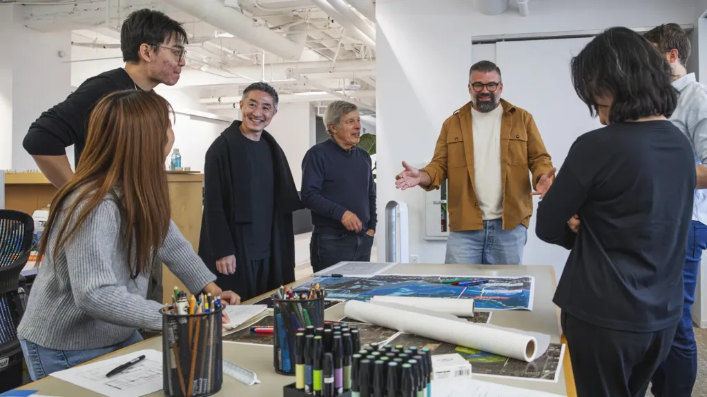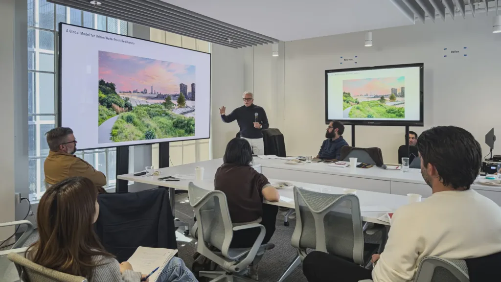 Throughout Saturday, SWA Principals compared approaches to water-sensitive design in their own regions, looking at how lessons from LA—its flood histories, post-fire landscapes, and legacy infrastructure—map onto challenges facing Texas, the Bay Area, the Mountain West, and East Asia. Conversations focused on practical questions: how to better integrate watershed thinking into early phases of design; how climate risk is reshaping client expectations; and how SWA can continue to refine tools for scenario planning, decarbonization, and long-term stewardship.