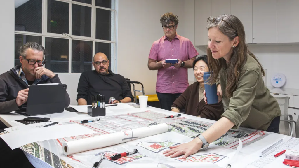 On Saturday, December 6th, SWA Principals assembled at the LA studio for a daylong workshop. Meanwhile, George Kutnar (Associate Principal, SWA LA) co-led a field tour of Milton Street Park, discussing the challenges of building LA’s first terraced levee park alongside Brian Baldauf (MRCA).