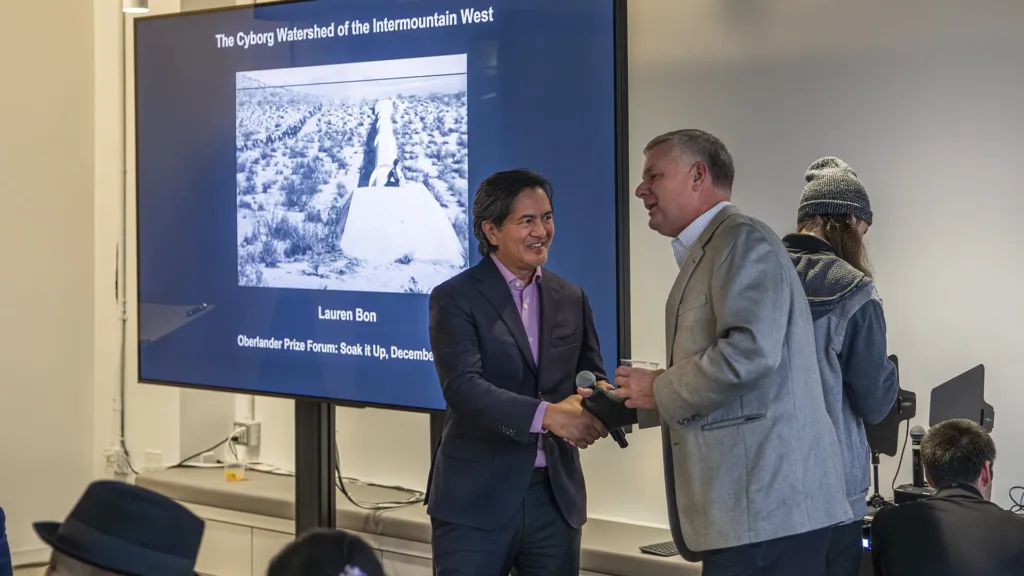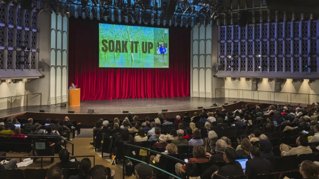 On Friday, December 5th, the group headed to the University of Southern California’s Bovard Auditorium for a day of panels and more detailed explorations of water issues in Los Angeles, the broader region, and globally. Sessions opened with a number of tributes to the late, visionary landscape architect Kongjian Yu, originally scheduled to participate in the event, whose work on “sponge cities” serves as a blueprint for how cities across the globe can live with water and address climate change in tandem; Yufan Gao (Boston Architectural College) and Liu Hailong (Tsinghua University, University of Pennsylvania) spoke in his memory. (Among many honors, Yu received TCLF’s 2023 Cornelia Hahn Oberlander Prize.)