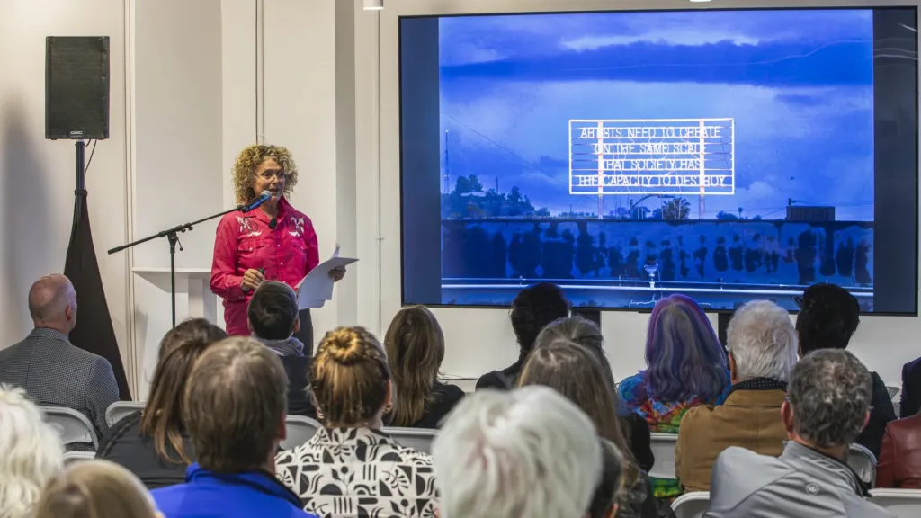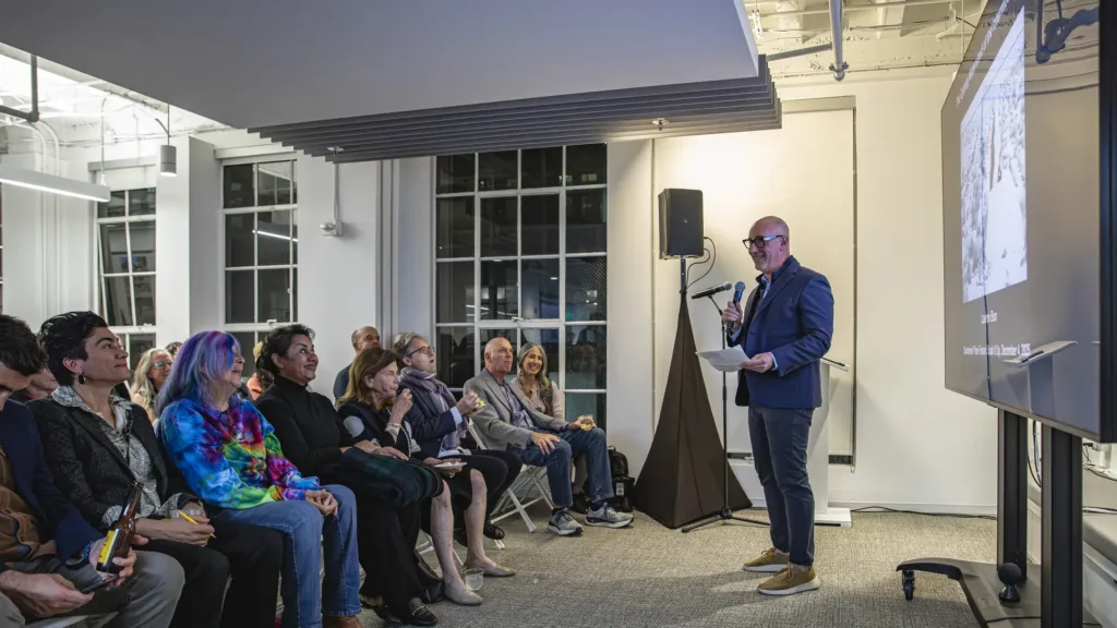On Thursday, December 4th, SWA hosted an opening reception with opening remarks by Gerdo Aquino, Co-CEO of SWA, and Charles Birnbaum, President and CEO of TCLF, followed by a keynote presentation by Lauren Bon, an artist, activist, and Director of Metabolic Studio. Surveying a number of site-specific art installations that repurpose landslide soil, record drilling and boring in the bed of the LA River, and take on the messy intersection of nature and infrastructure, Bon’s presentation opened the weekend with more macro questions about how designers narrate and intervene in water systems shaped by extraction, scarcity, and often unsuccessful attempts at control.